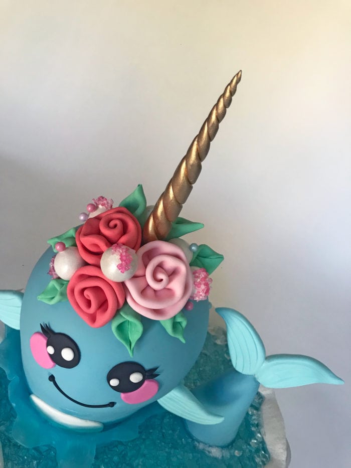-- Intermediate -- Move over Unicorn Cakes - Narwhals have taken over! Meet Nellie, our cute and loveable Narwal cake. She comes fully decked out in modeling chocolate ribbon roses, cloth looking leaves, isomalt water and splash, rice crispy square tale, and fondant fins. Theres a lot to learn in this course guys; it's a great intro in sculpting, and intro to isomalt. Sue also shows you how to stack a cake tall and thin, and neat tricks for smoothing ganache, and raising the cake board for easy handling. This class is so much fun and packed with info! Try it for yourself and surprise everyone with this new "it" cake!