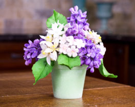 A Sugar Vase with Lilacs, Lemon Blossoms, Stephanotis, Berries, and Generic Blossoms.