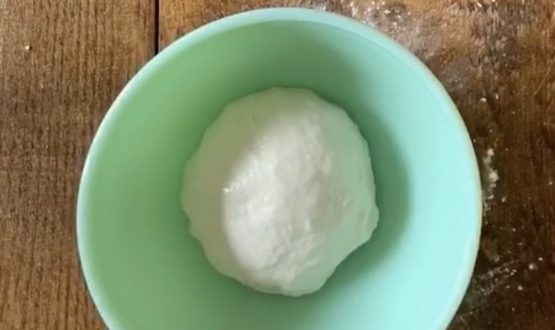 6. Turn dough out on to a floured surface and press and pull in to shape.