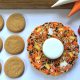 Adorned with the cutest sprinkle mix and hand made candy corn embellishments, edged in gold. The perfect tool to keep your fingers out of the icing ;).