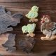 This 6 piece cutter set comes with 3 cutters…a mama chicken, and her 2 baby chicks. They each have their own custom designed stencil to help ensure a perfect cookie. Stainless steel and dishwasher safe, these cutter are also reversible.