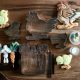 Here’s the class kit for the Live Cookie Class – On the Farm. The kit includes 4 stainless steel cookie cutters (hen, two chicks, and diggin’ for carrots) with the 4 coordinating custom pattern stencils, 3 paint brushes, Easter sprinkle mix, white nonpareils, chocolate in piping bag for nest (not shown) and complementary Virgin Ice Fondant (sponsored by Virgin Ice (not shown).